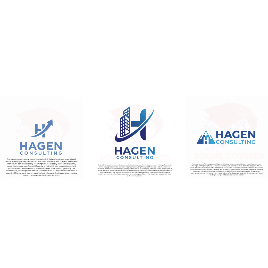 Once the initial concepts are reviewed, you can select your preferred direction, and we’ll produce three further refined variations based on that chosen style. This ensures a smooth, collaborative process and a final logo that feels professional, modern, and aligned to the vision for Hagen Consulting.