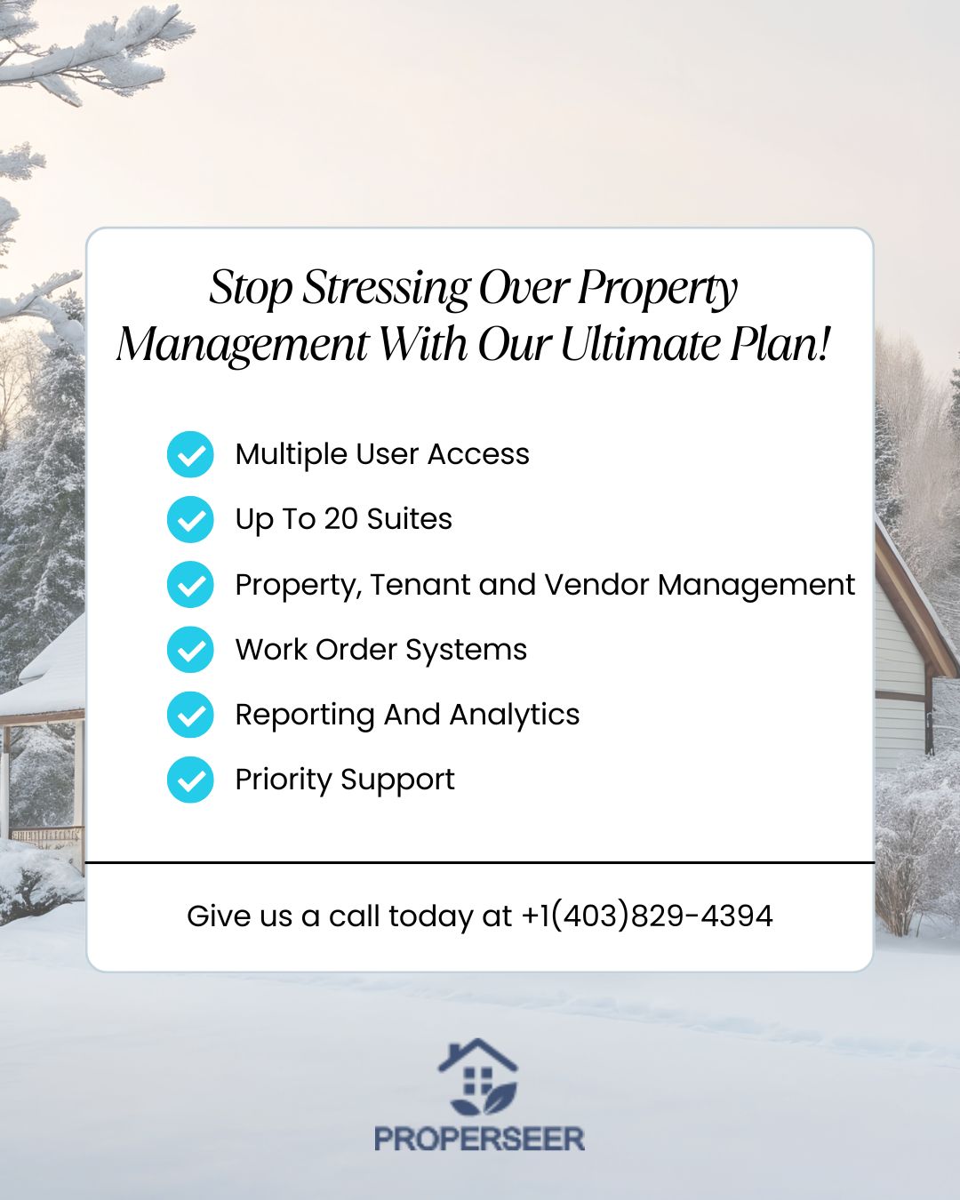 This custom pricing reflects a discounted rate from our standard Chick Plan, offered exclusively to Properseer.